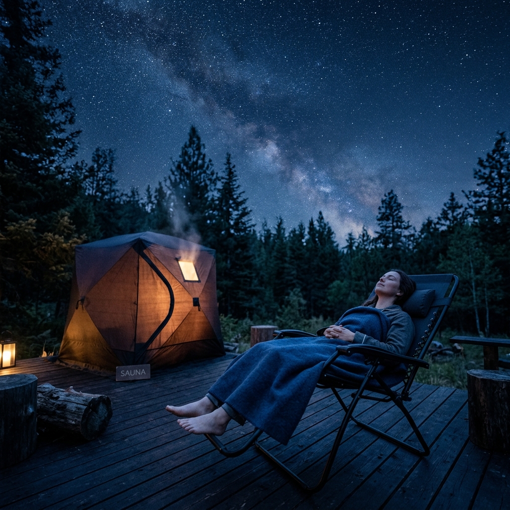 都会の喧騒を離れる必要はありません。ただおうちにテントサウナを準備するだけ。自分だけのプライベートな夜の儀式が、あなたの自律神経を、深淵なる安らぎへと確実に導きます。